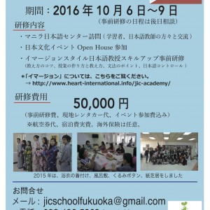 10月11日〜14日、フィリピンの日本語学校で、日本文化イベントに参加します。 今で、既に5名の皆さんの参加が決まっています。 あと1〜2名くらいは可能かな〜?!という感じです。 興味のある方は、お早めにお問い合わせ下さい…